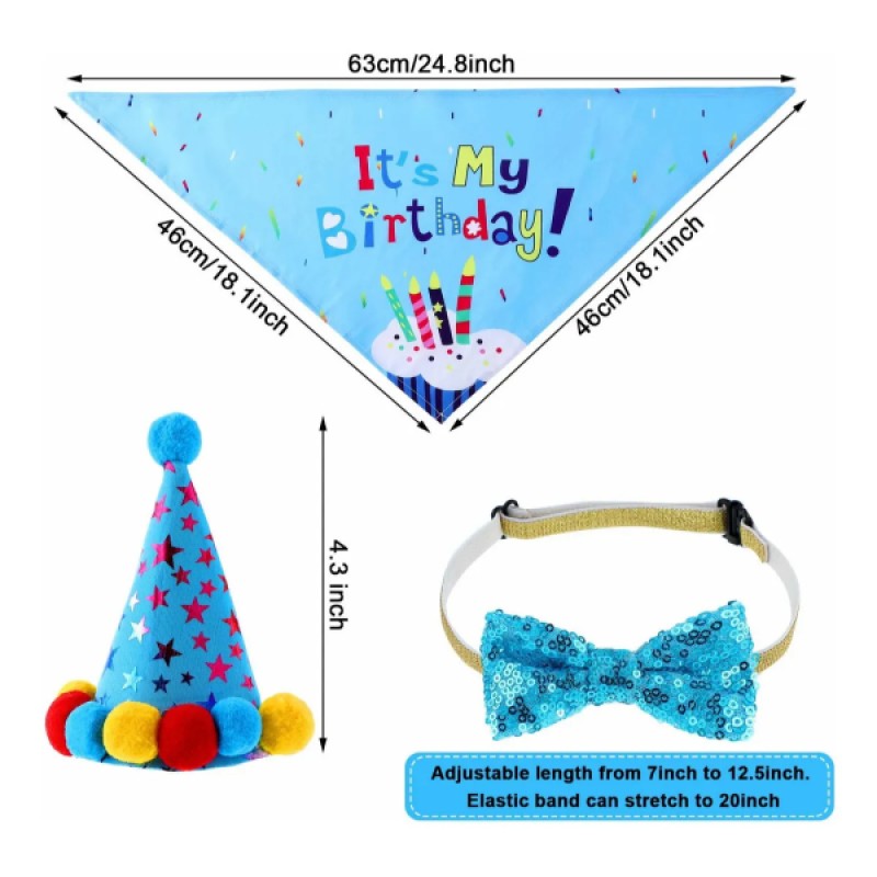 Sevimli dostunuzun en özel gününü unutulmaz kılmak için tasarlanan köpekler için doğum günü partisi seti, tam bir kutlama atmosferi yaratır. Set içeriğinde yer alan renkli balonlar, şirin parti şapkaları, fular ve dekoratif banner sayesinde köpeğinizin doğum günü hem eğlenceli hem de fotoğraflık bir anıya dönüşür. Ürün, evcil hayvan dostlarımızın doğum gününü özel kılmak isteyen tüm hayvan severler için idealdir.Set içerisinde bulunan "It's My Birthday" yazılı bandana, köpeğinize şıklık katarken, sevimli parti şapkaları sayesinde kutlamalara neşe katabilirsiniz. Mavi tonlarda hazırlanan balonlar patili ve puantiyeli tasarımlarıyla ortama eğlenceli bir hava katar. Ayrıca "Happy Birthday" yazılı bayraklı banner, mekân dekorasyonunu tamamlayarak kutlamayı daha görkemli hale getirir.Köpeğinizin rahatlığı düşünülerek tasarlanmış olan aksesuarlar, kolayca takılıp çıkarılabilir. Sağlam malzemelerden üretilen parçalar defalarca kullanılabilir. İç ve dış mekânlarda rahatlıkla kullanabileceğiniz bu parti seti ile dostunuza unutulmaz bir doğum günü sürprizi yapabilirsiniz.